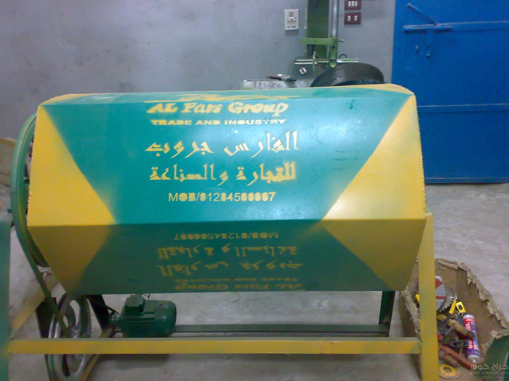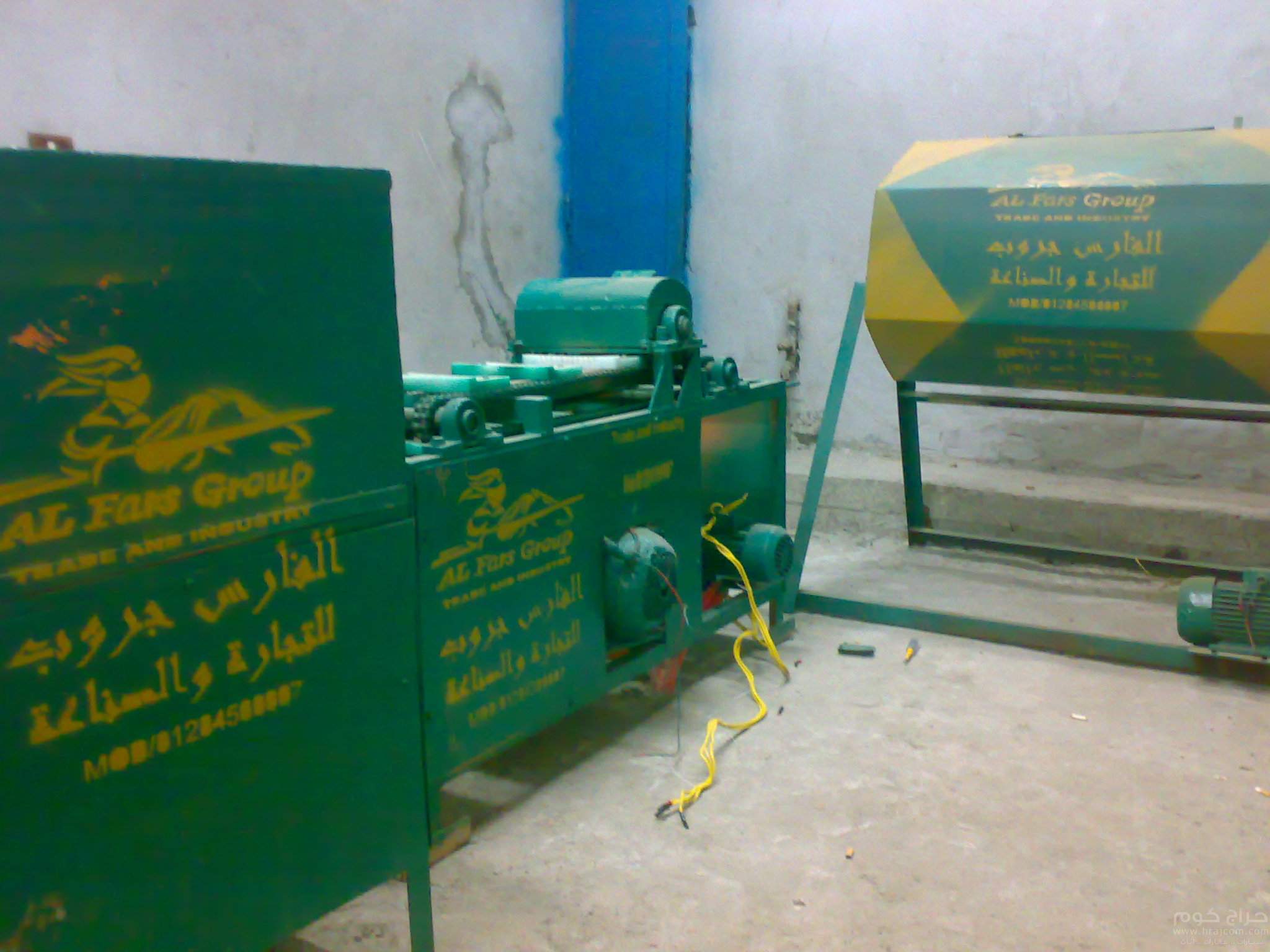 * ماكينة حلية وخدشه عمود 35ملي قرص 6ملي ماتور صيني ملف نحاس 2 حصان 1400 لفة بقادوس نشارة وبتقفيل خارجي صاج 2 ملي بطلاء برايمر.