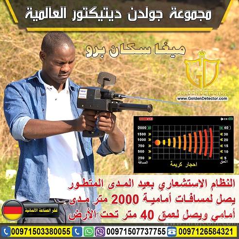 جهاز الكشف عن الذهب والمعادن والكنوز والكهوف واللدفائن النفيسة ميجا سكان برو , التكنولوجيا الأفضل في عالم التنقيب والاستكشاف جهاز العصر الذهبي في الكشف عن كنوز الارض والذهب الخام والمصنوع والكهوف والأنفاق بانتاج مصنع ميغا لوكيتورز الألمانية الاصدار الجديد لعام 2018 النظام التكنولوجي الحديث والمميز تم تصنيف الجهاز في المراكز الاولى عالميا من جميع الهيئات الالمانية والعالمية للاستكشاف والتنقيب , لانفراد الجهاز بثلاث انظمه مدمجه في نظام واحد بدقة استكشاف 100 % مؤكده دون اي نسبة خطأ