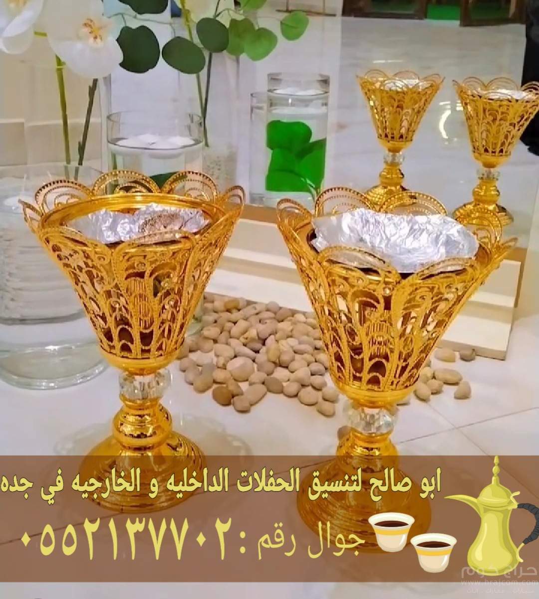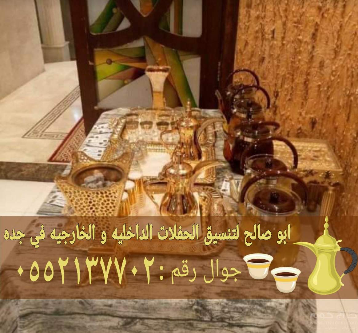 يتم توفير معه أطقم مدهبة من القهوة وأيضا الأباريق الأنيقة حتى يستمتع كل من يتناول القهوة .