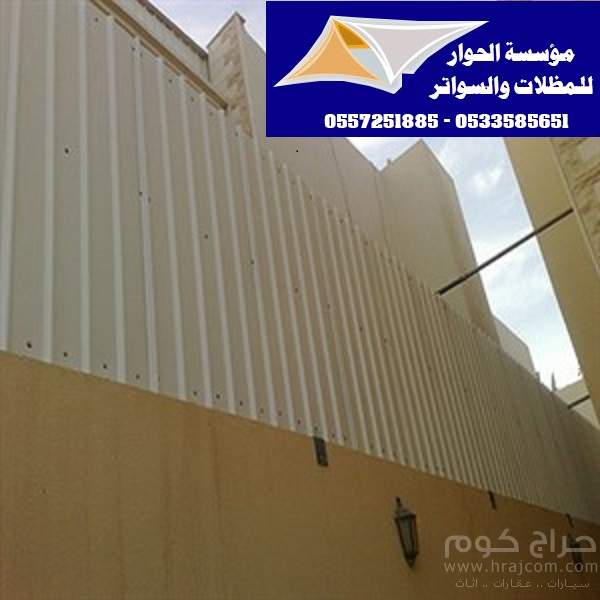 تقوم مؤسسة الحوار بتقديم احدث مظلات وسواتر من مؤستتنا ونحن افضل مؤسسة لتركيب مظلات وسواتر وبيوت شعر وقرميد وهناجر وشبوك - مظلات كابولي - مظلات مقوسه - مظلات مدارس - مظلات سيارات - سواتر حديديه - سواتر قماشيه - سواتر بلاستيكيه متخصصين في كافة خدمات المظلات والسواتر مع تطورالتكنولوجيا في السعودية وجميع مدن المملكة ومع تقلبات الجو التي تحدث مستمره اصبح الجـميع في حاجه الى الاستعانه باستخدام السواتر والمظلات لحمايتهم وحمايه اسرتهم من تقلبات الجو التي تنتج مؤسسة الحوار تفتخر بفضل الله ثم بثقة عملائها الكرام انها افضل مؤسسة سواتر ومظلات في السعودية وجميع مناطق المملكة العربية السعودية , للتواصل معنا على الجوال الموضح, 0557251885_ 0533585651وللمزيد من مشاهدة الصور يمكنكم زيارة موقعناhttp://alhawwar.shibam.org/