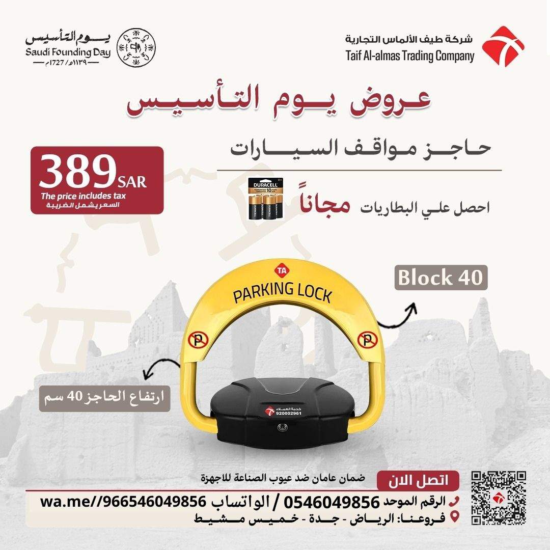 شركة طيف الالماس التجارية تقدم لك عروض يوم التاسيس جهاز حاجز ومصد مواقف السيارات parking lock