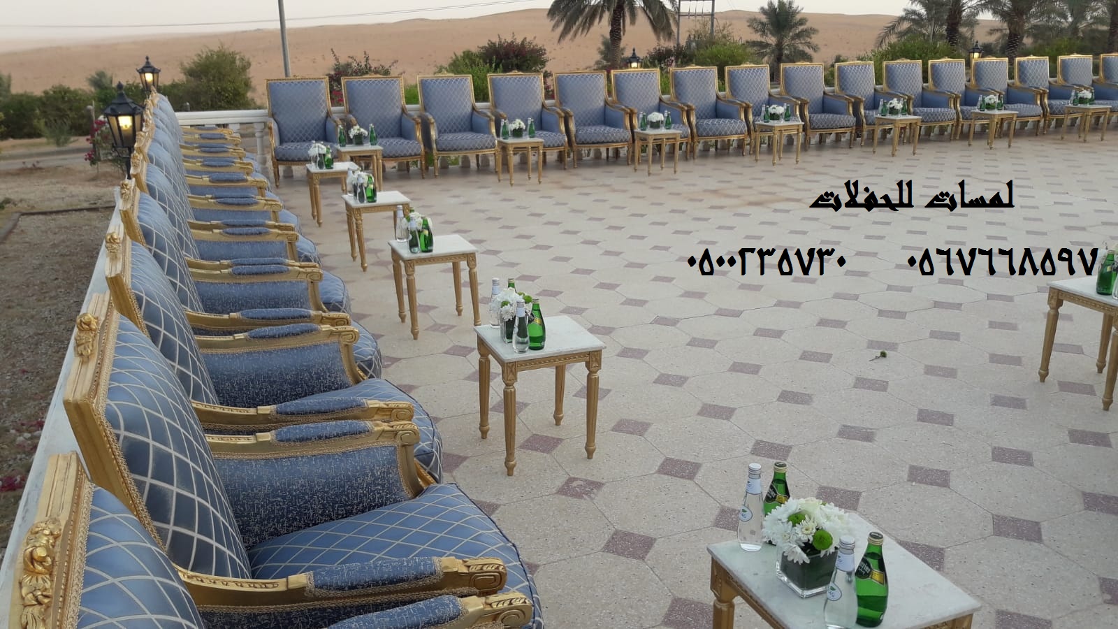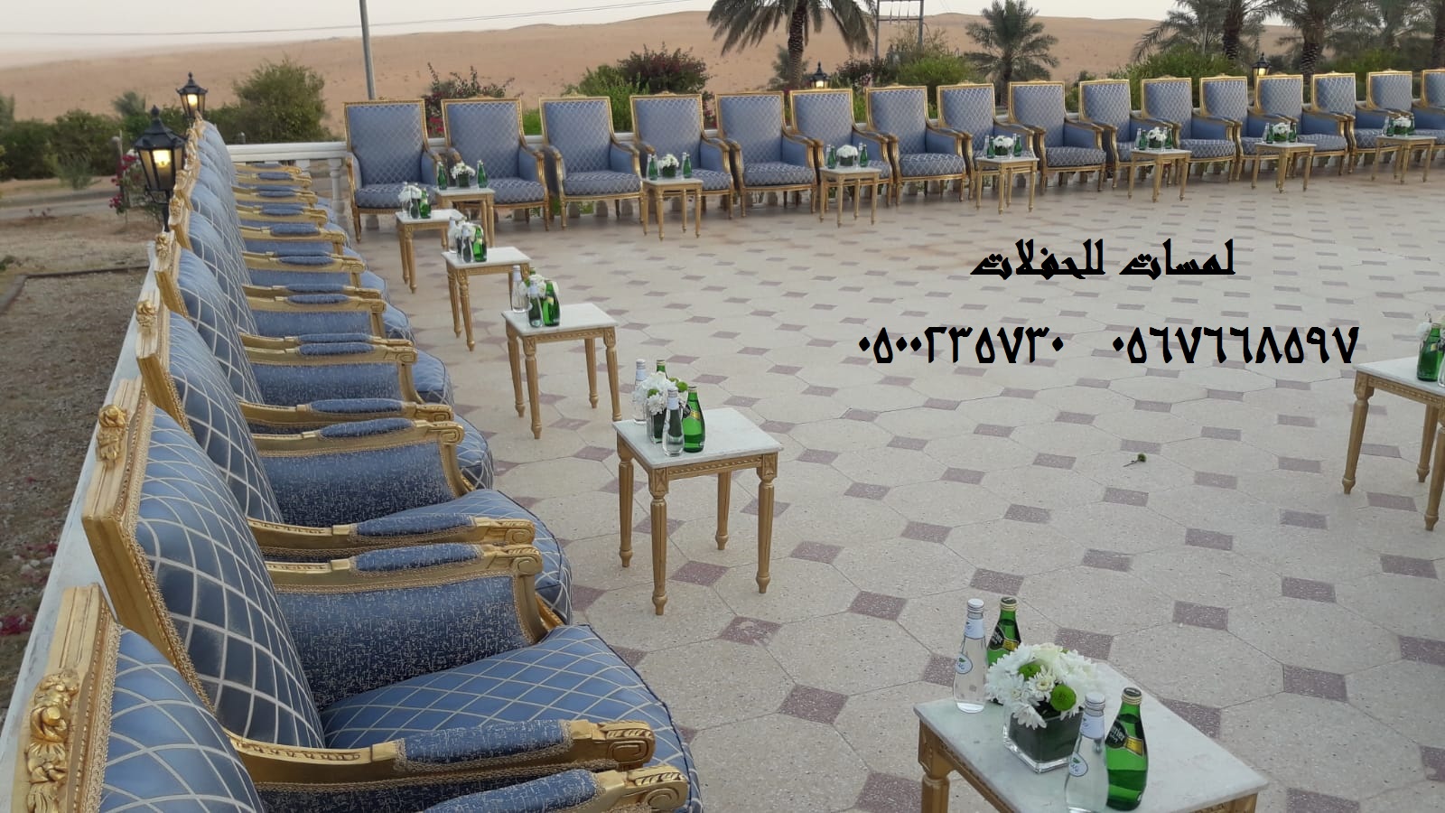 ?مؤسسة لمسات للحفلات تقدم:تجهيز حفلات,تزين قاعات افراح,ايجار جميع انواع المجالس,جلسات ارضيهتاجير طاولات كوكتيل متوفرة بالأنواع : مضيئة , تلبيسة , حديد مع خشب ,بللور , تاجير كنب جلد , تاجيرمكيفاتخيام متوسطةللايجار, خيام كبيرةللايجار,ايجار كنب ملكيخدمات تنظيم الاحتفالات ,كنب جلد ابيضكراسي فندقية , طاولات طعام وبوفيه , طاولات اجتماعاتتزين قاعات,ايجار جميع انواع المجالس,جلسات شالكي الوان مختلفهايجار خيام,كنب شعبي,ايجار كنب ملكي,ايجار تراثياتتاجير دفايات فيصليه وعاديه وتاجير خيام شفافه وجلسات مودرنتنظيم وتأجير لوازم المناسباتوالاحتفالات العامه والخاصهاختار ما يناسبك من الصورللتواصل معنا على الارقام التالية:8597 766 056730 235 00 05