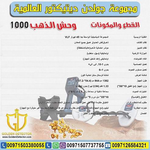 تقدم لكم شركة جولدن ديتكتور الة كشف الذهب والمعادن أحدث وأفضل أنواع الأجهزة الثورية والمتطورة في كشف الذهب الخام والمعادن والكنوز الثمينة الذي يتمتع بأفضل المميزات التقنية التي أثبتت نتائج مذهلة علي المستوي العملي والميداني العالمي فإنه الجهاز الذي يمتاز بالأداء العالي للغاية مع سهولة الإستخدام .