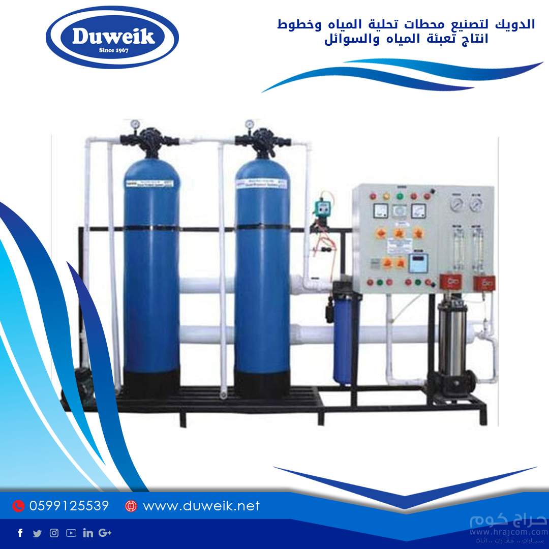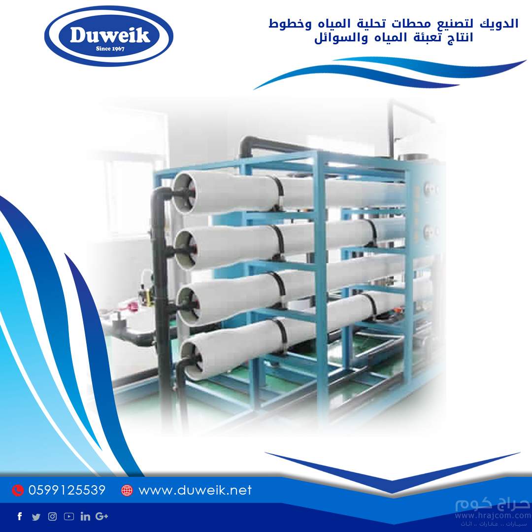 شركة الدويك الدوليه للصناعات الخفيفة محطات تحلية مياة واجهزة تحلية ومصانع مياة ومصانع ثلج ومصانع عصائرتقدم خدمة تجهيز مصانع المياه وخطوط تعبئة المياه والقوارير بجميع المقاسات والطاقات الانتاجية وفق أحدث المواصفات العالميةخطوط آلية بالكامل تعمل على إنتاج وتعبئة قوارير المياه ( نوع PET) بمختلف الاحجام ، حيث أن جميع ماكينات ومعدات خطوط إنتاج المياه تعمل بدقة كبيرة .لدينا معدات وماكينات تركي - الماني - ايطالي - وطني زورونا على موقعناwww.duweik.netاو تواصلو معنا على الاتصال من داخل السعودية / 0599125539الاتصال من خارج السعودية / 00966599125539