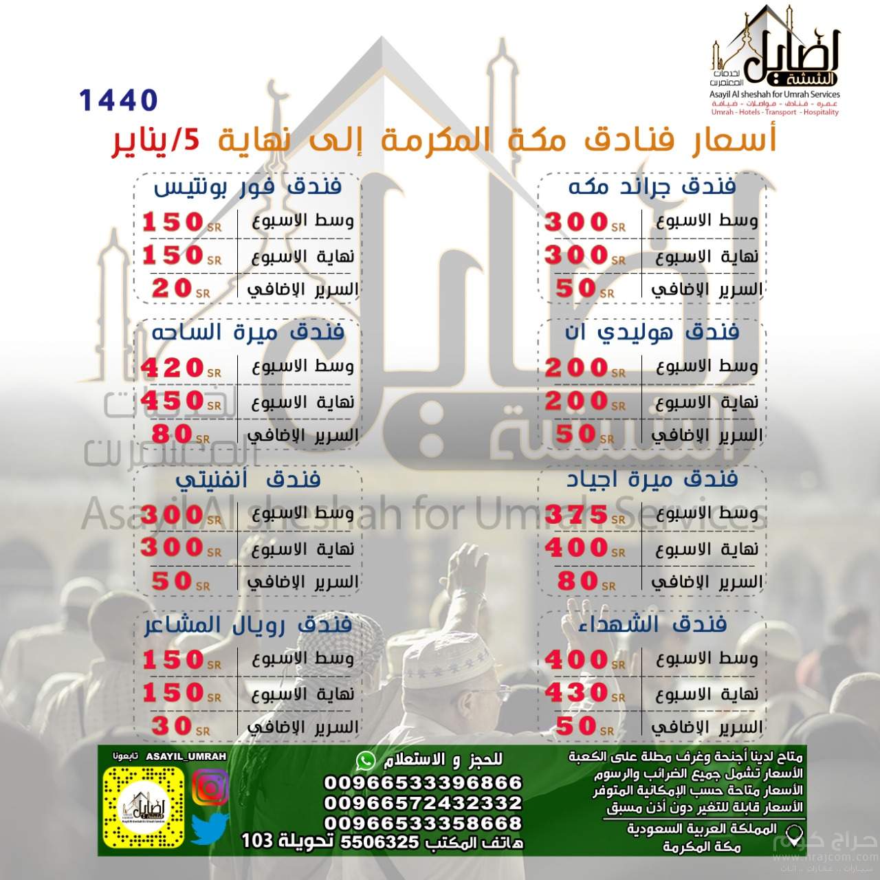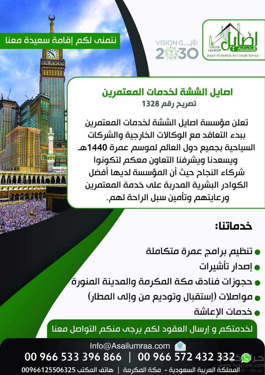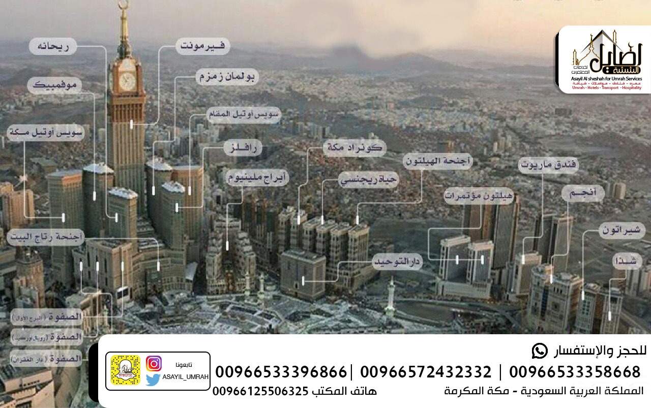» اصايل الششه لحجز فنادق مكه 00966572432332 ارخص حجوزات فندقيه بمكه،شركات حجز فنادق بمكه،خدمات معتمرين بمكه،عرض خاص لحجز فنادق بمكه،عروض حجز فنادق في مكه ،حجز فنادق بمكه قريبه من الحرم