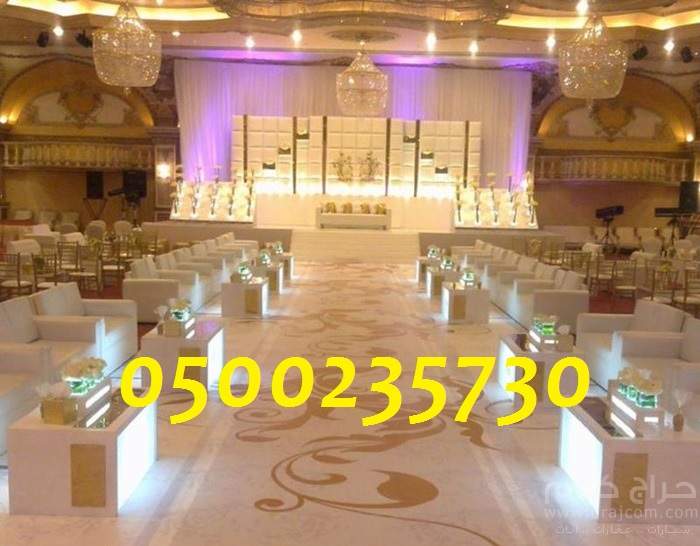 جميع الخدمات المساندة من ديكورات وسجاد وكراسي وكنب ومنصات القاء ومسارح ومكيفات مركزية اضاءة