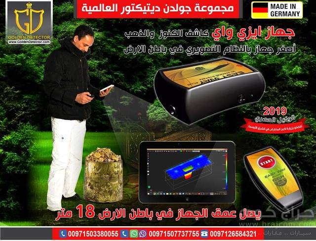 » جهازايزى واى بلس لكشف الذهب والمعادن بين يديك الأن من شركة جولدن ديتيكتور للطلب والاستفسار موبايل : 00971503380055 يمكنك الأن كشف الذهب والمعادن الدفينة بكل سهولة وسرية وأمان بمفردك بدون فريق كامل للبحث عن طريق جهازEasy Way Plus فإذا أردت معرفة مواصفات