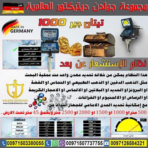 شركة جولدن ديتيكتور العالمية تقدم لكم جهاز5 أنظمة تيتان جير 1000 TITAN GER للكشف عن الذهب والكنوز والمعادن مع العرض الحالى بالشحن المجانى لمن يبحث عن الثروات والتميز !!!