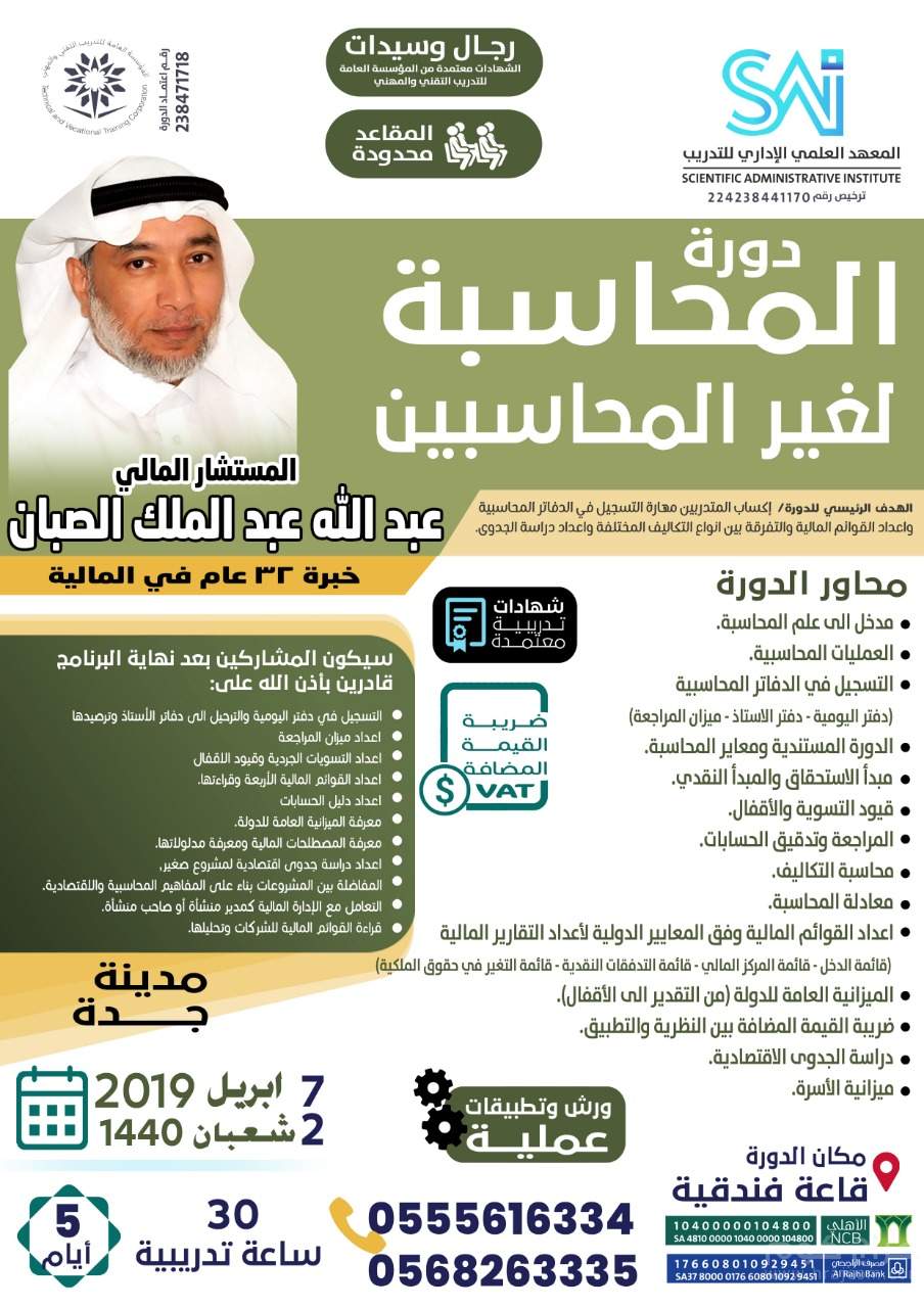 المعهد العلمي الإداري للتدريب بجدة يقدم #دورة_المحاسبة لغير المحاسبين في #جدة