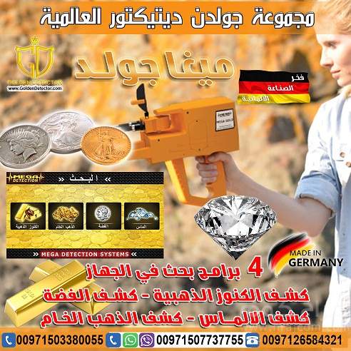 كشف الذهب والثروات المعدنية الان بجهاز ميجا جولد Mega Gold بعروض مجانية على الشحن والتوصيل المقدم من شركة جولدن ديتيكتور