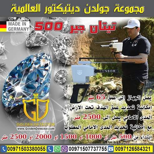 جهاز كشف الألماس تيتان جير 500 يعمل بنظام الاستشعار عن بعد يمكنك من كشف هدفك حتى عمق 65 متراً داحل باطن الأرض وعلى مدى سطح الارض 2500 متر