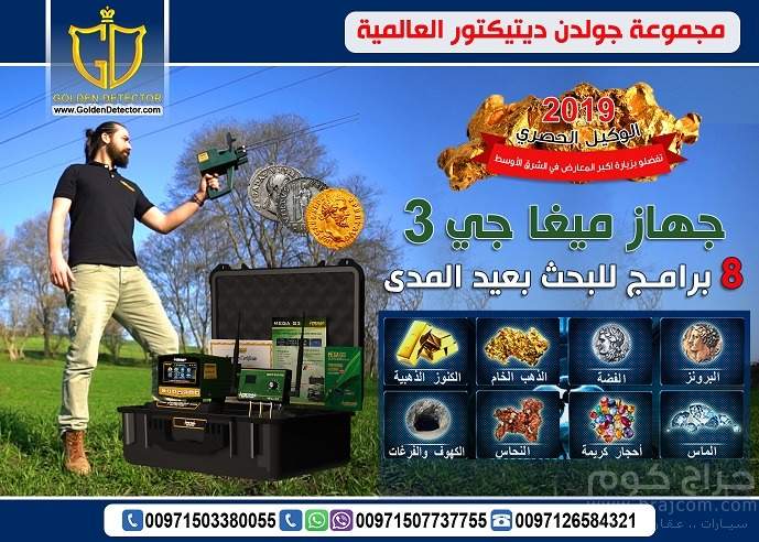 تقدم شركة جولدن ديتكتور جهاز كشف الذهب والكنوز الذهبية ميغا جي3 أفضل جهاز من شركة Mega Detetcion العالمية