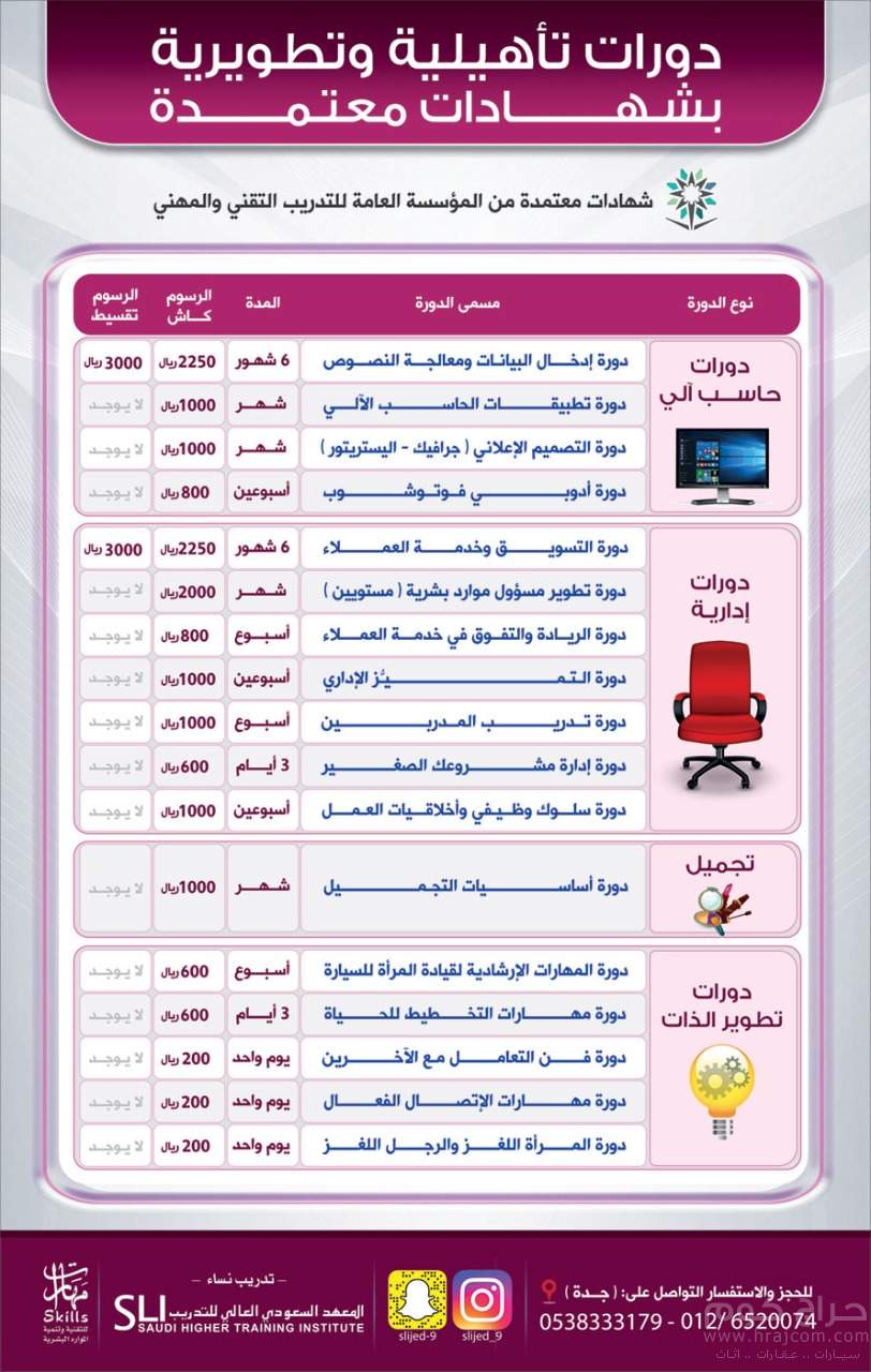 دورات حاسب آلي – دورات إدارية – دورات تطوير ذات – دورات تجميل
