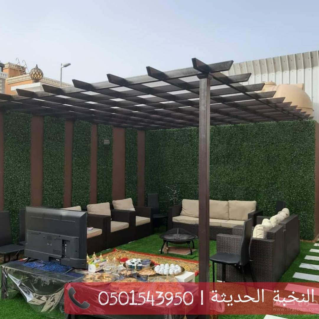 نقوم في مؤسسة النخبه الحديثة بتركيب كافة اشكال وانواع برجولات حدائق للمنازل والاستراحات و الفلل ,