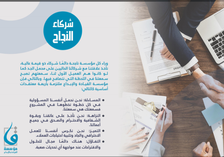 4) صفحة قيم ومبادئ عمل الشركة.